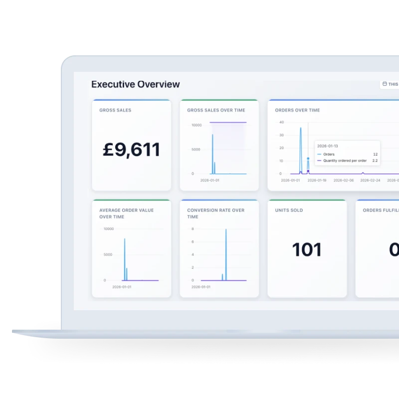 Magnify turns Shopify data into real-time retail intelligence.Connect your store in seconds and see live performance dashboards with key KPIs, trends and insights for management, marketing and operations.